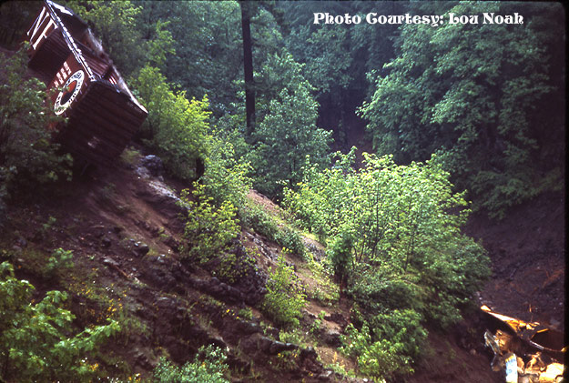 went over the side and two, a Northern Pacific and a Union Pacific boxcar, still remain but are