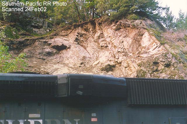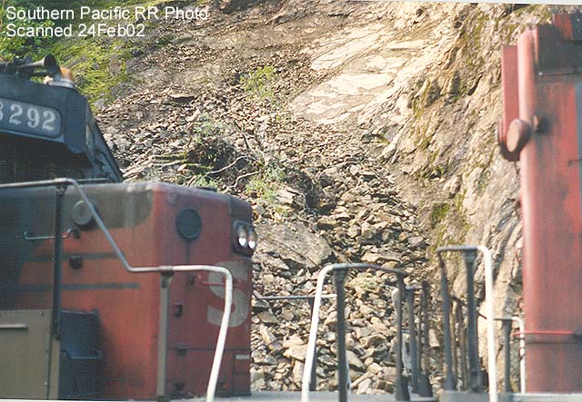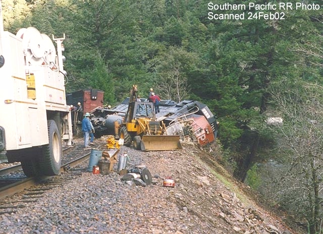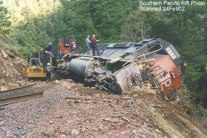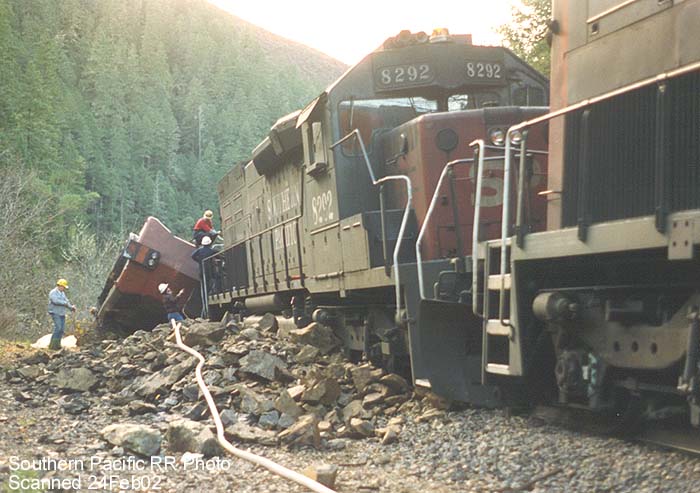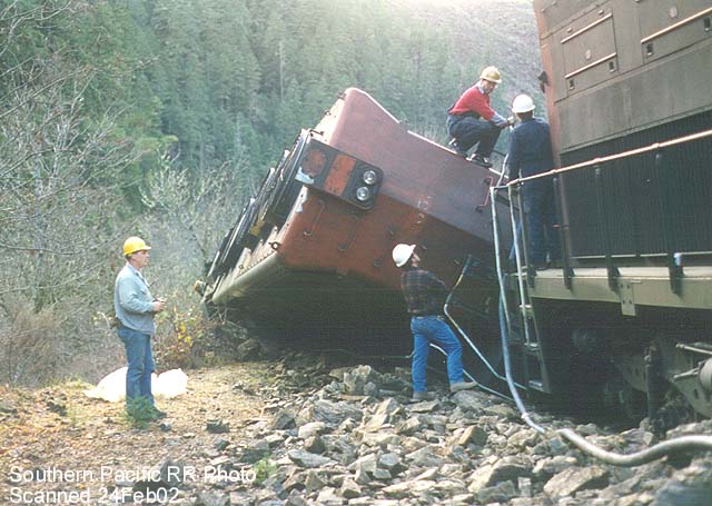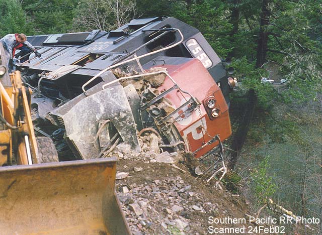 SD-45 #7555 nearly went over the side after hitting a rockslide near Riddle.