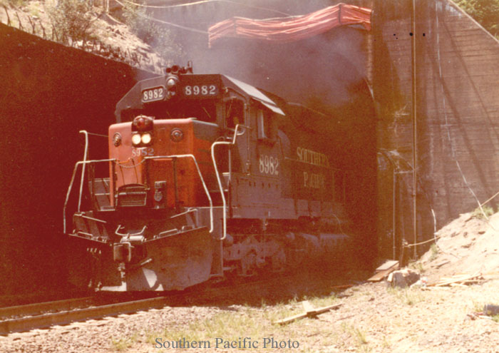 Road tests have been completed to evaluate the effectiveness on locomotive performance and train speeds of a temporary curtain applied to the west portal of Tunnel #7 near Cruzatte.Eight runs were made between June 14 and June 23 utilizing SD-45 unit 8921 as the trailing unit of a 3-unit lead locomotive consist. Train speeds were adjusted by throttling back helper units striving for 12.5 MPH nominal on grade. Four runs were conducted with curtain closed and four were run with curtain open. Data collected are tabulated and graphed on the attached exhibits. The graphs have been colored only in the confines of Tunnel #7. Unit 8921 was equipped with a temperature recorder mounted in the cab of the unit to log critical engine temperatures. Horsepower meters were also installed to measure changes in engine output as unit progressed through the tunnels. The Curtain used was a temporary affair made of rubberized nylon sheet and, while it did not offer a perfect seal, it did demonstrate the effect of pressurizing the tunnel by the piston action of the locomotive. Pressures of four pounds per square foot against the curtain were recorded, and we understand that this pressure is within the design limitations imposed by FMC for construction of permanent curtain. For the first run with the curtain closed, Test #1, the curtain was opened at a point where the locomotive was within 600 feet of the tunnel exit. For all subsequent tests with the curtain, it was set to open at a 400 foot distance. There is no question but that the use of a curtain at Tunnel #7 will give marked improvement to locomotive performance. While the benefits to be gained in so far as reduction of engine temperatures are minimal, the supply of oxygen-rich air for engine combsution greatly reduces the amount of engine derating which normally occurs in tunnels and consequently train speeds are kept to a reasonable minimum. At no time during the tests with the curtains in operation did train speed in Tunnel #7 get lower than 11 miles per hour, whereas, under standard conditions with curtain open, minimum speeds ranged between 4 and 8.5 MPH. At the conclusion of run #7 where train speed slowed to four MPH and measured engine output dropped to 250 HP, we were suspicious that unit 8921 had sustained a turbo charger malfunction. Unit was closely inspected on return to Eugene that evening, and, as it turned out, the only discrepancy found was that air filters appeared dirty and in need of changing. This condition of filter plugging may have had an influence on the relatively large amount of engine derating which occurred on the previous test #6 when curtain was in operation. In any event, the last test, which had the new engine air filters in service, produced excellent engine performance in that there was only a loss of 600 horsepower due to derating and no change in train speed through the tunnel. It is our considered opinion that use of a curtain at west portal of Tunnel #7 will greatly improve performance of high horsepower units in that territory and will maintain train speeds at a level considered acceptable by operating crews. Recommend that we proceed with FMC to have permanent doors applied. As matter of information, the proposed tunnel tests utilizing SD45T-2 units to be conducted jointly with EMD are scheduled to commence instrumentation on July 10 with the first trip from Sparks to Roseville to be on July 18. At the conclusion of these tests, which include two runs through the Cascades starting on or about July 22, we intend to utilize EMD's test car ET-800 to evaluate the performance of outside shrouds over radiator air intakes together with 6th throttle knockdown feature on SD-45 units with all units in the lead helper consists so equipped. W.O. Brown