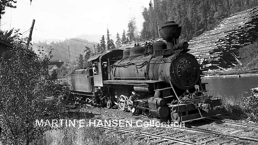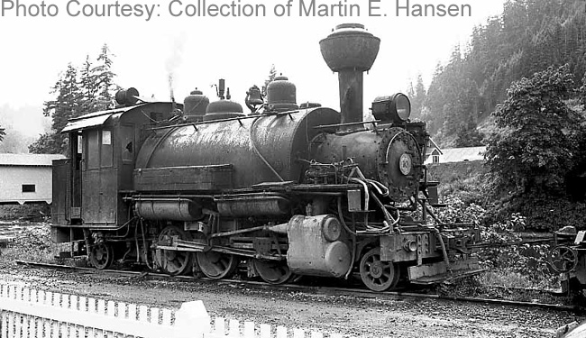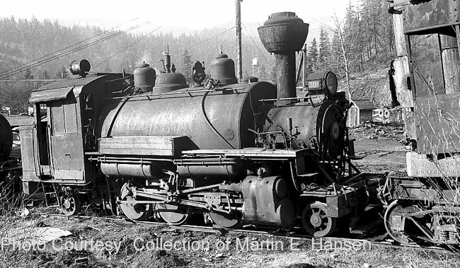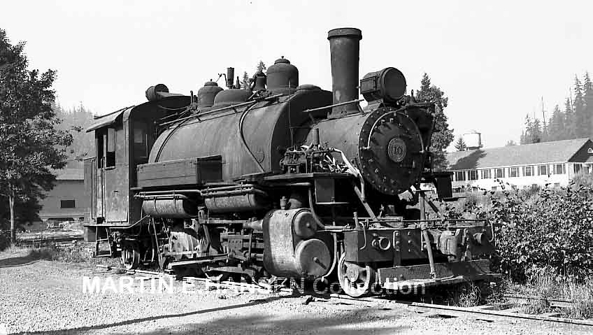 #10 at Westfir. Note the cable connecting the locomotive and the log car |