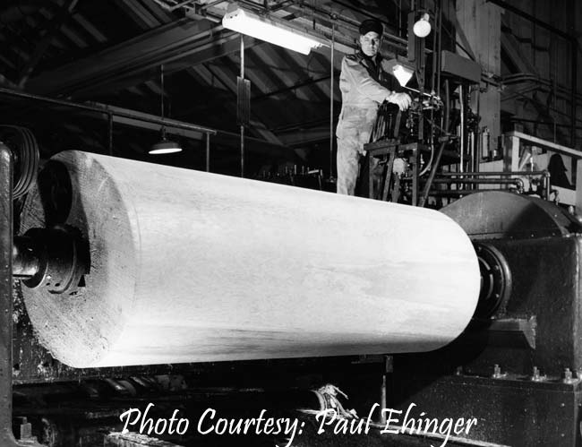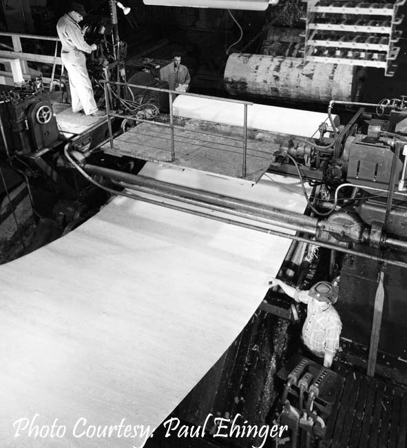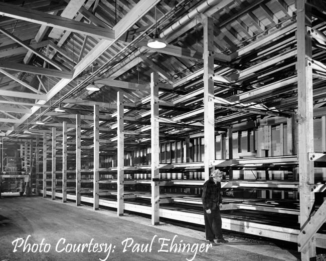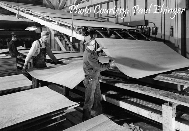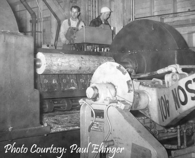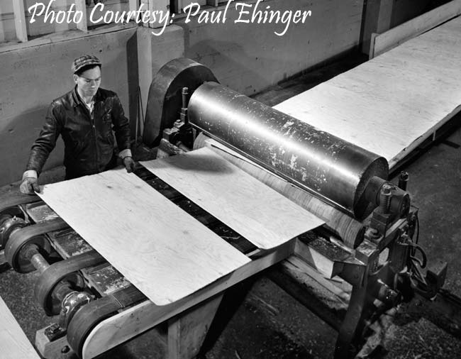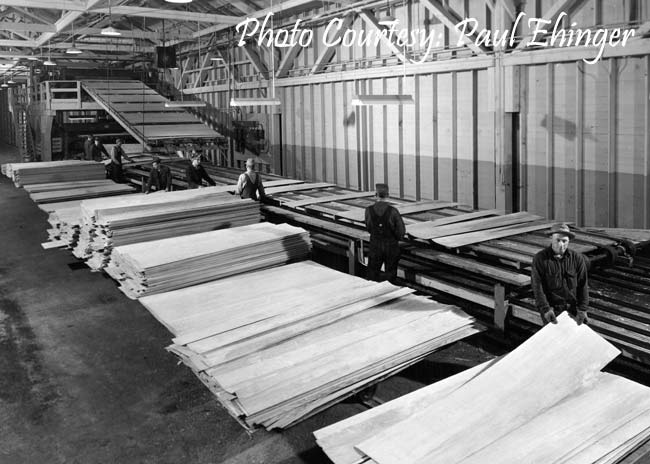 The long piece of veneer then goes on to live-chain equipped racks before going to the trimmer |