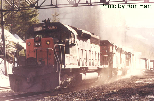 SD-40 #8450 pulling into the siding |