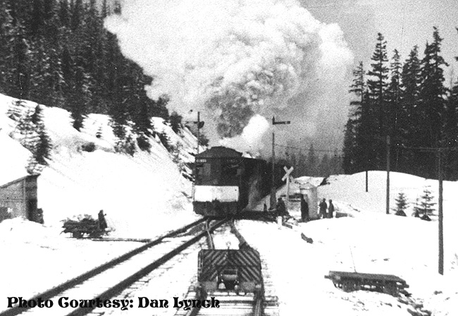 Heavy snow near the west switch Abernethy. The siding has been extended since this photo was taken. |