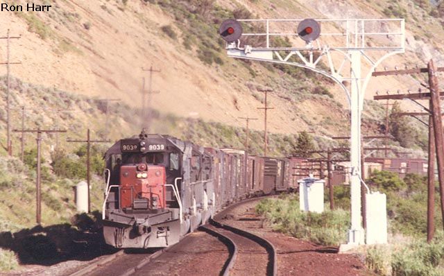SD-45 #9039 leads an eastbound over the west switch of Algoma.