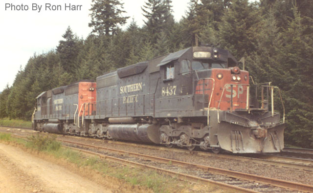 Helper #8437 consisting of two SD-40s holds the siding at the east end of Dexter siding.