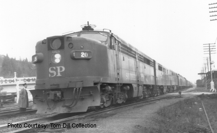 Daylight painted Alco PA #6031 holds the main at Eugene with train #20 |