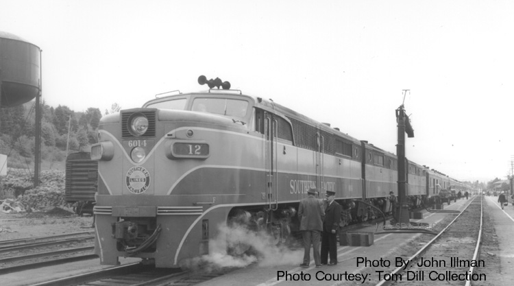 Train #12, led by Alco PA #6014 prepares to depart Eugene for Portland, May, 27, 1950 |
