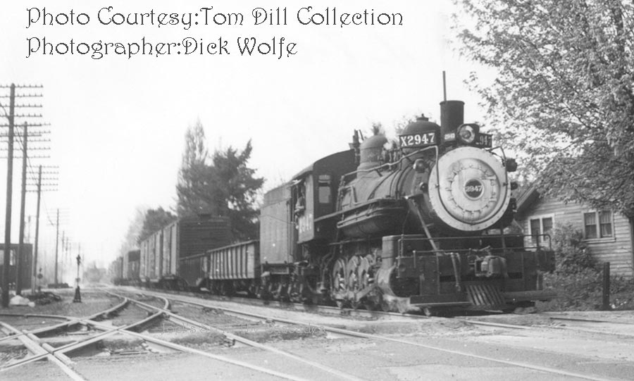 Extra 2947 West, led by 4-8-0 #2947 whistles for the Jefferson Street crossing |