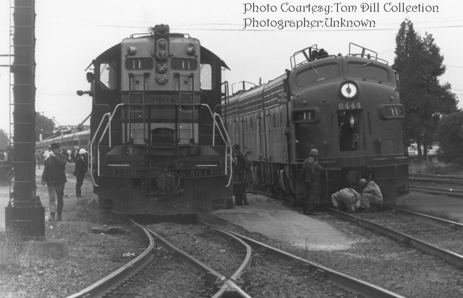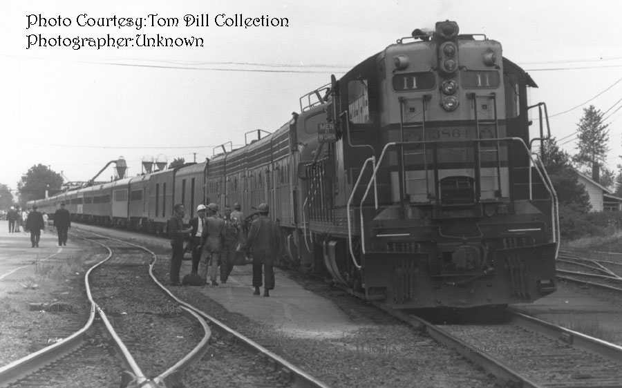 SD-9 #3864 pauses on the Eugene Siding while crews prepare the point of train #11 on the mainline |