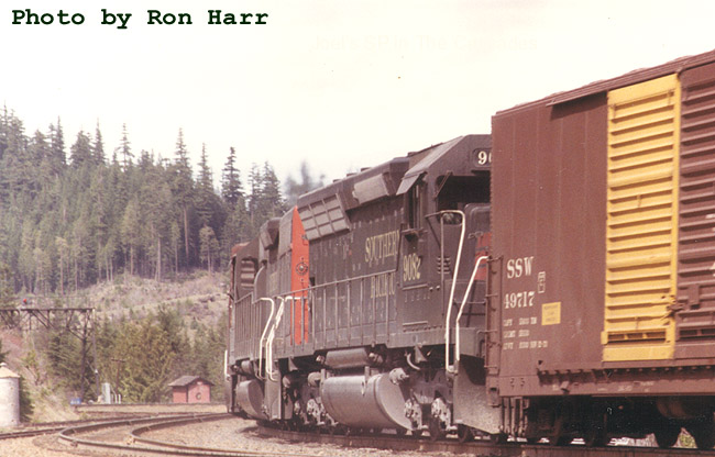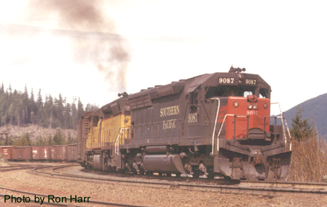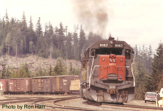 SP 9087 west pulling through the siding at the east end |
