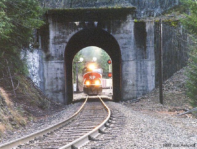 SD-70M leading a westbound freight over the West Switch at Fields. This shot was taken through Tunnel #15 |