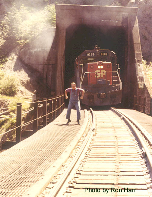 Here we see Ron Schultz inspecting Noisy Creek Bridge. Surely if it can hold a man jumping, it will hold a train.NEW |