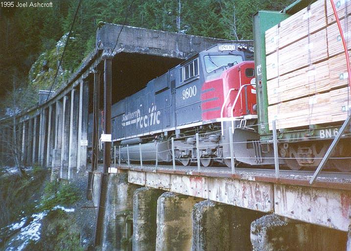 SD-70M #9816 approaches the rockshed between tunnels 12 and 13 |