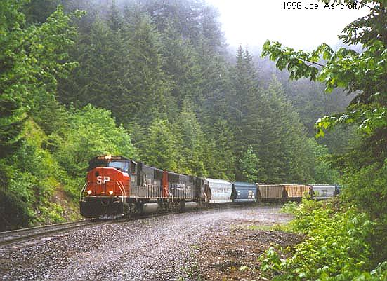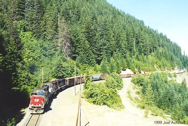 Westbound freight at Noisy Creek Bridge approaching Tunnel #9 |
