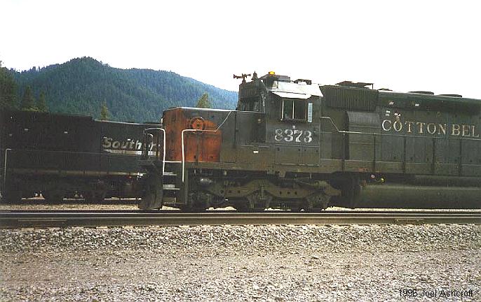 A helper set enters the yard as the SP 8373 waits for a signal |