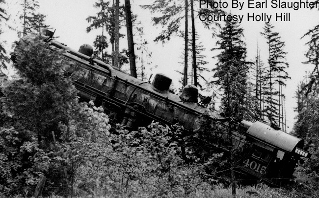 First section of train 671, with Cab Forward 4135 on the point, enters the siding at East Oakridge |