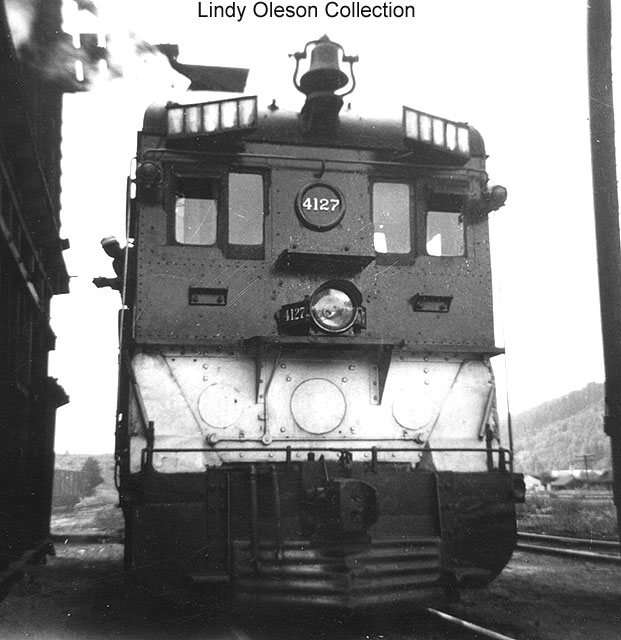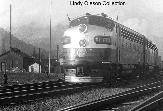 First section of train 671 gets underway out of track 3 after cutting-in two Cab-Forward helpers