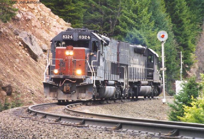 SD-40T-2 #8324 East at MP 558.2. This signal location is the approach to the West Switch of Wicopee, above Tunnel #19 |