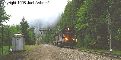 Signal bungalow at West Frazier. The propane tanks in the back ground supplied LP gas for the switch heaters. Although the siding has been removed, Frazier still remains a control point for the dispatcher. The absolute signals are still used.